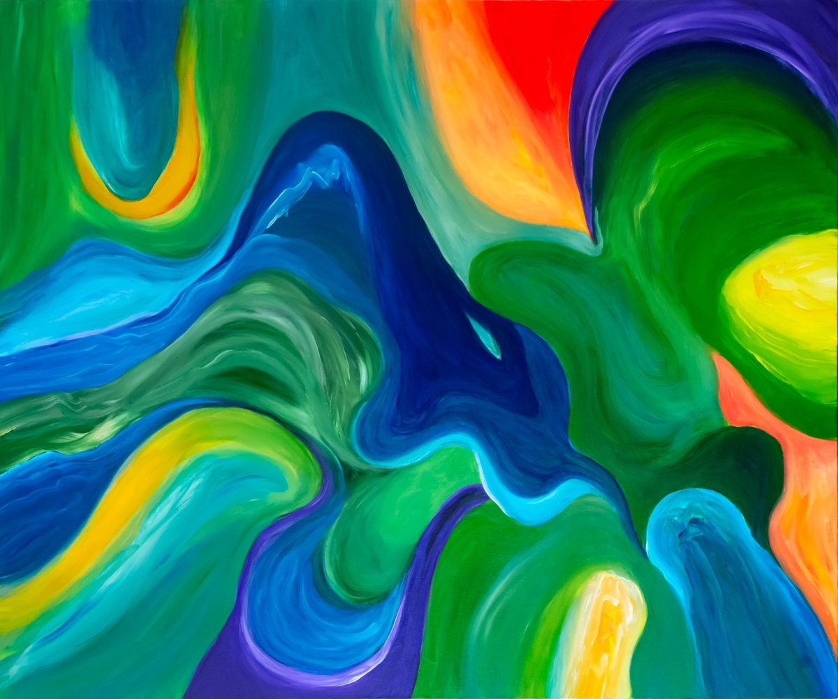 Nas telas, as pinceladas de Varella não se limitam à representação; elas ecoam o ritmo da própria natureza. Os movimentos sinuosos e circulares de sua técnica evocam a energia contínua da pororoca, esse confronto entre o rio e o oceano, traduzido em tonalidades terrosas e profundas que remetem à visceralidade do fenômeno. Já nas representações dos rios e suas margens, a explosão de cores expande o olhar para a riqueza de vida e a diversidade de paisagens que a Amazônia carrega em suas águas.