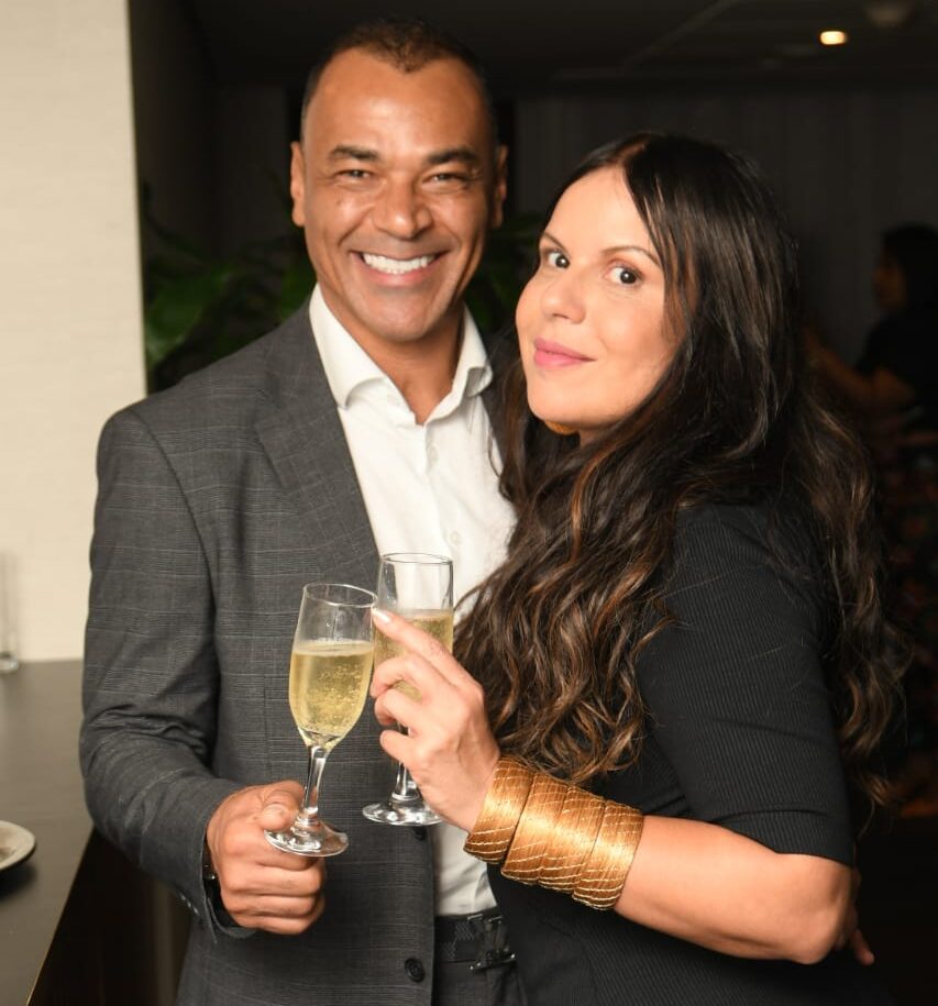 O jornalista Liberado Júnior, Neguinho da Beija Flor, Cafu, Roberto Rotter, Diretor Executivo do Grupo Own Hotels; Cafu e a jornalista Thamiris Vieira