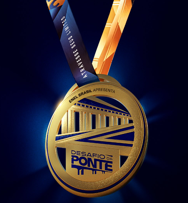 Pesando cerca de 200g e com aproximadamente 11cm de diâmetro, a medalha do Desafio da Ponte terá o dourado como cor principal, simbolizando o desejo dos corredores por vencer as dificuldades de uma prova exigente e conquistar uma grande vitória pessoal. Por sua vez, o contraste visual azul e os traços fluidos representam o movimento das águas da Baía de Guanabara e o horizonte, paisagem que emoldura a Ponte Rio-Niterói, principal palco desta corrida que ocupa o posto de uma das mais emblemáticas do país. E, como não poderia deixar de ser, a própria Ponte Presidente Costa e Silva – nome oficial da elevação que conecta as duas cidades e das quais pegou emprestado seu apelido popular – surge como elemento central no design deste que será o símbolo de superação dos atletas que cruzarem a linha de chegada.