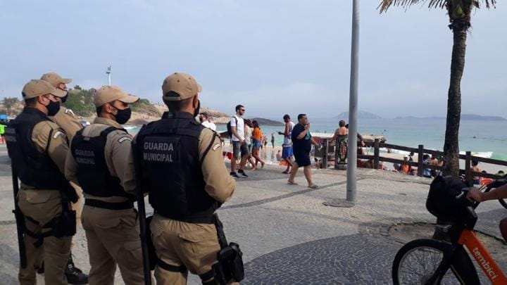Cerca de 175 guardas municipais estão atuando na areia, no calçadão e nas vias de acesso às praias que vão do Leme, na Zona Sul, até o Pontal, na Zona Oeste da cidade. As ações têm o apoio de 24 viaturas, 10 motocicletas e cinco tendas operacionais instaladas em pontos estratégicos na areia.