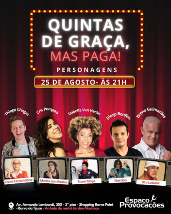 Haverá também esquetes e apresentações do ator Diogo Bonfim, com o seu personagem Narcisa; da atriz Izabella Van Hecke, com seu personagem a Super Moça; da atriz Cris Pompeo, com o seu personagem Marisa aos Montes e do ator Thiago Chagas, com seu personagem a Dona Fernandona.